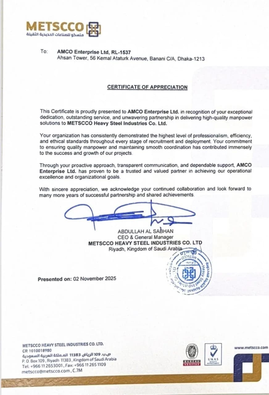 AMCO Enterprise is a trusted overseas manpower recruitment agency, providing skilled workers across industries with a complete end-to-end process from sourcing and training to deployment and after-sale support.
